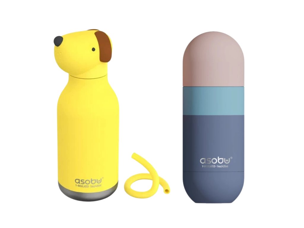 Objavte dokonale zladenú súpravu pre deti aj dospelých – výhodný balíček Asobu Bestie Bottles Psík + Asobu ORB cestovná termoska Pastel Blue 420 ml.