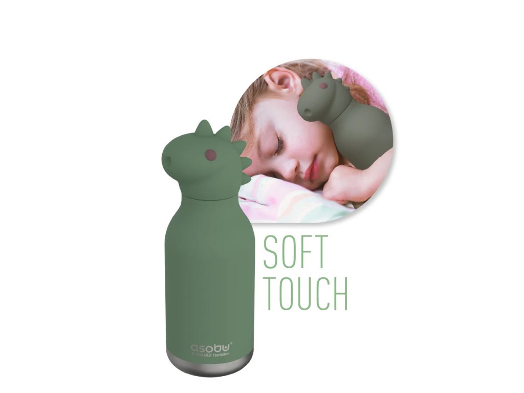 Na výber je z niekoľkých obľúbených zvieratiek, Medvedík, Zajačik, Psík, Žirafa, Dinosaurus a Jednorožec. Obal fľaše je zo silikónu.