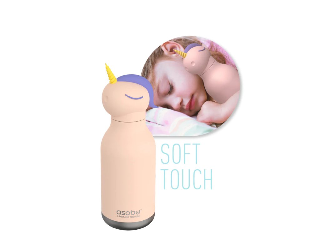 Na výber je z niekoľkých obľúbených zvieratiek, Medvedík, Zajačik, Psík, Žirafa, Dinosaurus a Jednorožec. Obal fľaše je zo silikónu.