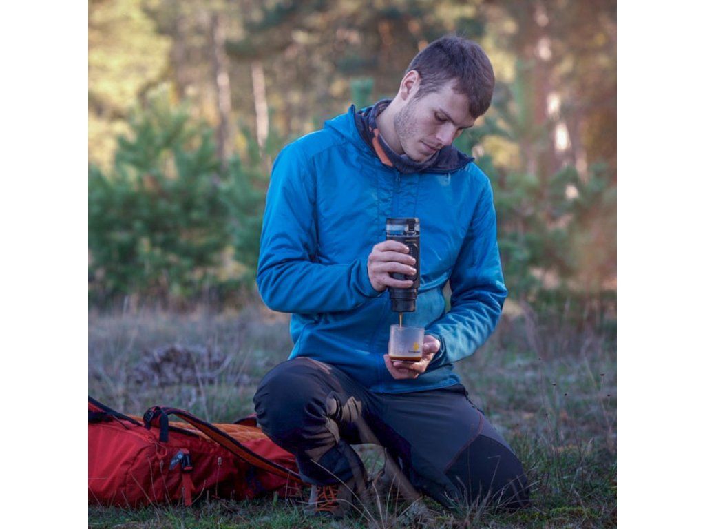 Wild Hybrid pracuje s ručným tlakom — pumpujete vzduch do zásobníka (ako pumpa na bicykel), potom pridáte horúcu vodu a pretlačíte ju cez kávový puk alebo ESE pod. Funguje bez elektriny. |