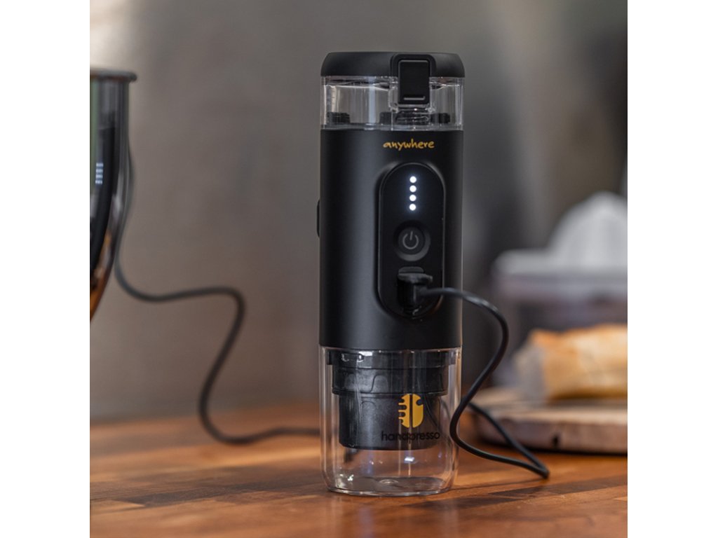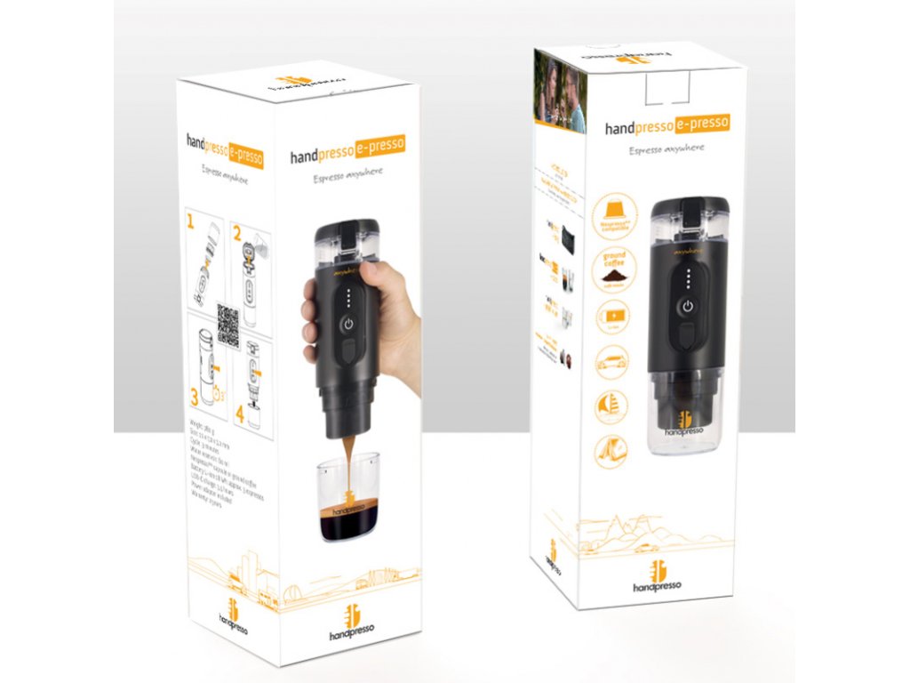 Handpresso E-Presso je nový přenosný kávovar, který skvěle využijete tam, kde si rádi vychutnáte lahodné espresso. Díky zabudované baterii již nepotřebujete řešit externí napájení, kávovar jde nabíjet přes USB-C - stejně jako váš mobilní telefon. Při plném nabití dokáže vytvořit minimálně 4 lahodné kávy. Příprava kávy ze studené vody zabere zhruba 3 minuty a 30 sekund, s horkou vodou kávu připravíte takřka ihned.