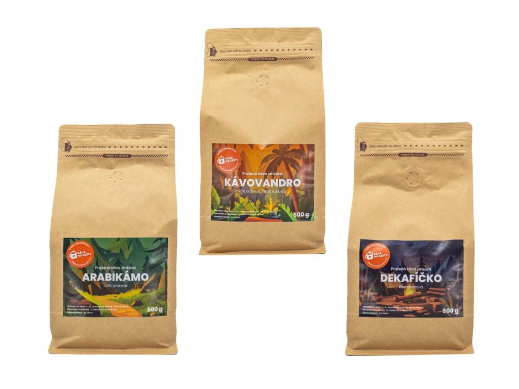 Objavte kompletnú sadu zrnkových káv, ktorá sa dokonale hodí na doma, do práce aj na cesty – zvýhodnený balíček obsahuje: Arabikámo 500 g + Kávovandro 500 g + Dekafíčko 500 g. Každá z týchto troch káv má iný charakter, takže si vždy vyberiete chuť presne podľa nálady.