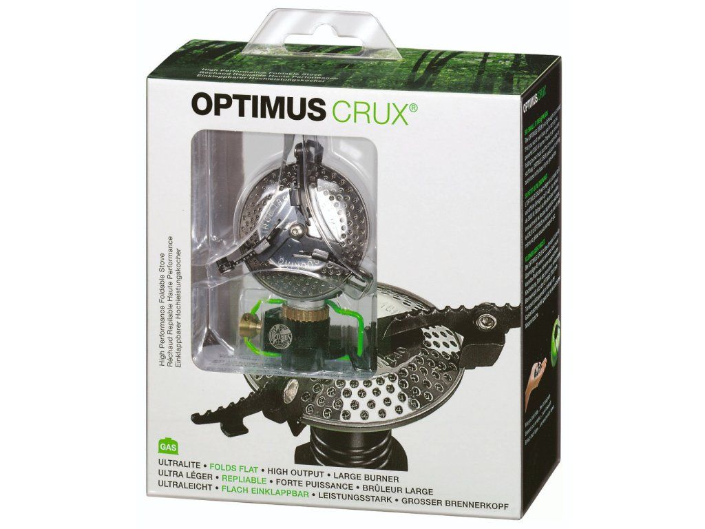 Na dovolenke, na cestách do prírody, na horských túrach alebo na výletoch určite oceníte vysoko výkonný plynový cestovný varič Crux s inovatívnou technológiou sklopnej hlavy od švédskej firmy Optimus. Tento plynový varič sa vyznačuje v prvom rade svojou malou hmotnosťou 83 gramov, kompaktnosťou a rozmermi 34 × 76 × 57 mm. Vďaka tomu si sotva všimnete, že ho máte v batožine a navyše sa dokonca zmestí do vypuklého dna kartuše 230 g. Súčasťou balenia je tiež horák s ventilom a puzdro, do ktorého môžete zariadenie ľahko uložiť.