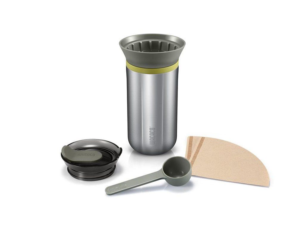 Wacaco Cuppamoka kávovar pripraví skvelú kávu na cestách bez použitia elektrickej energie. Jednoducho do kávovaru vložíte papierový filter na filtrovanú kávu (súčasťou balenia je 10 filtrov), nasypete do neho mletú kávu a zalejete horúcou vodou. Kávovar potom premeníte na nerezový termohrnček a máte pripravenú lahodnú kávu na cesty.