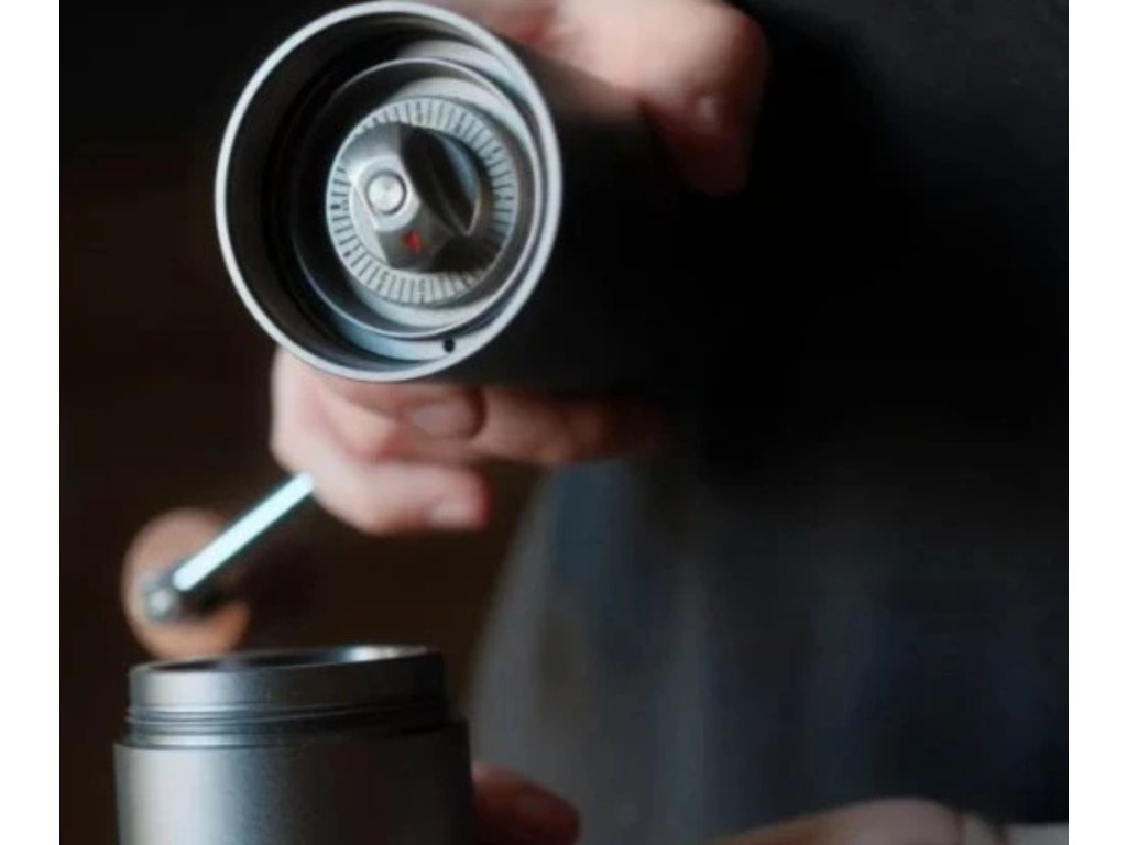 Kovové telo, nerezové mlecie kamene a plynulé nastavenie hrubosti zaisťujú dlhú životnosť aj perfektný výsledok. Je ideálny na cesty, pretože je ľahký a nevyžaduje žiadnu elektrinu.