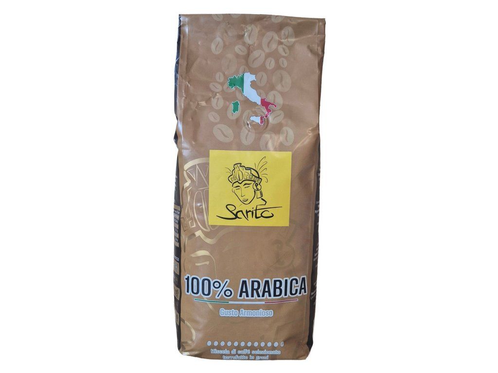 - Sarito 100% Arabica 1 kg — jemná čistá Arabika s florálnym arómom, prirodzenou sladkosťou a orechovými tónmi.
